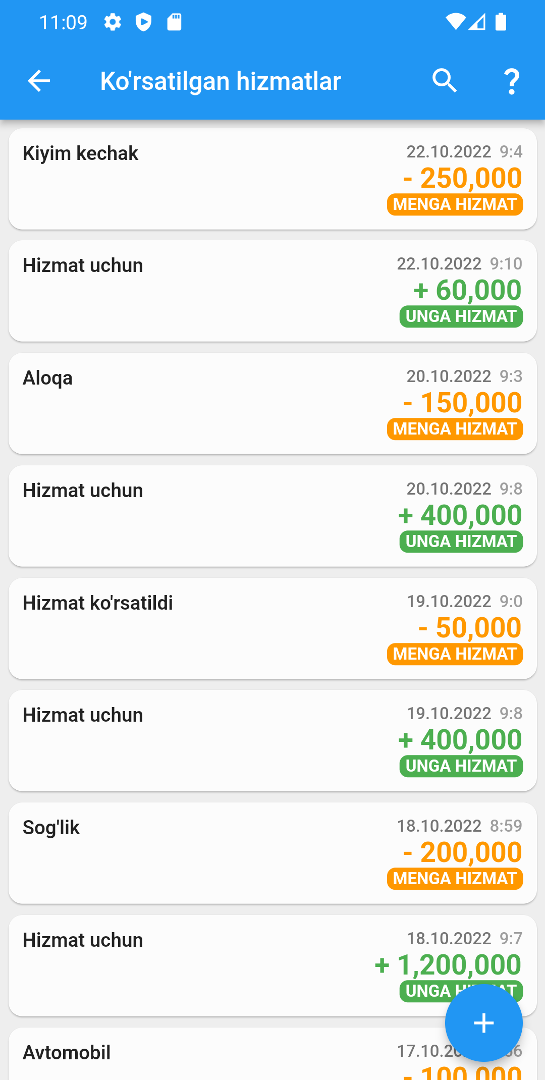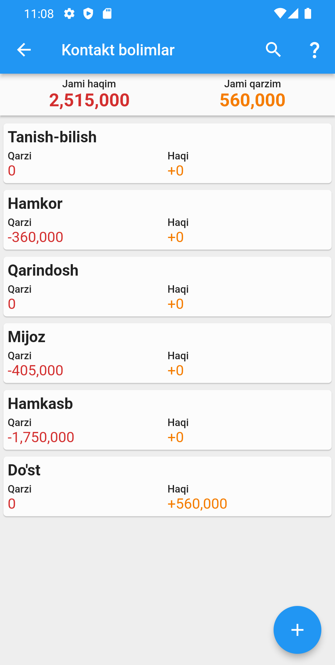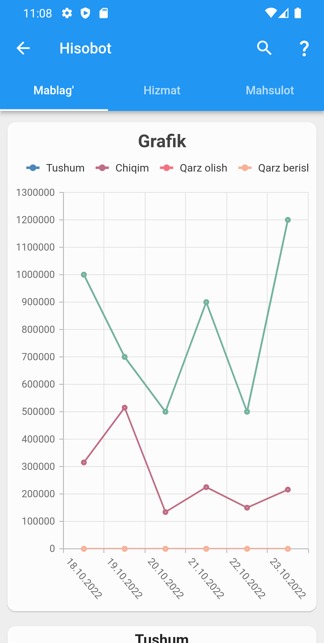 Chiqim-tushum, nasiya maxsulot, hizmat ko'rsatish, qarzdorlar daftari