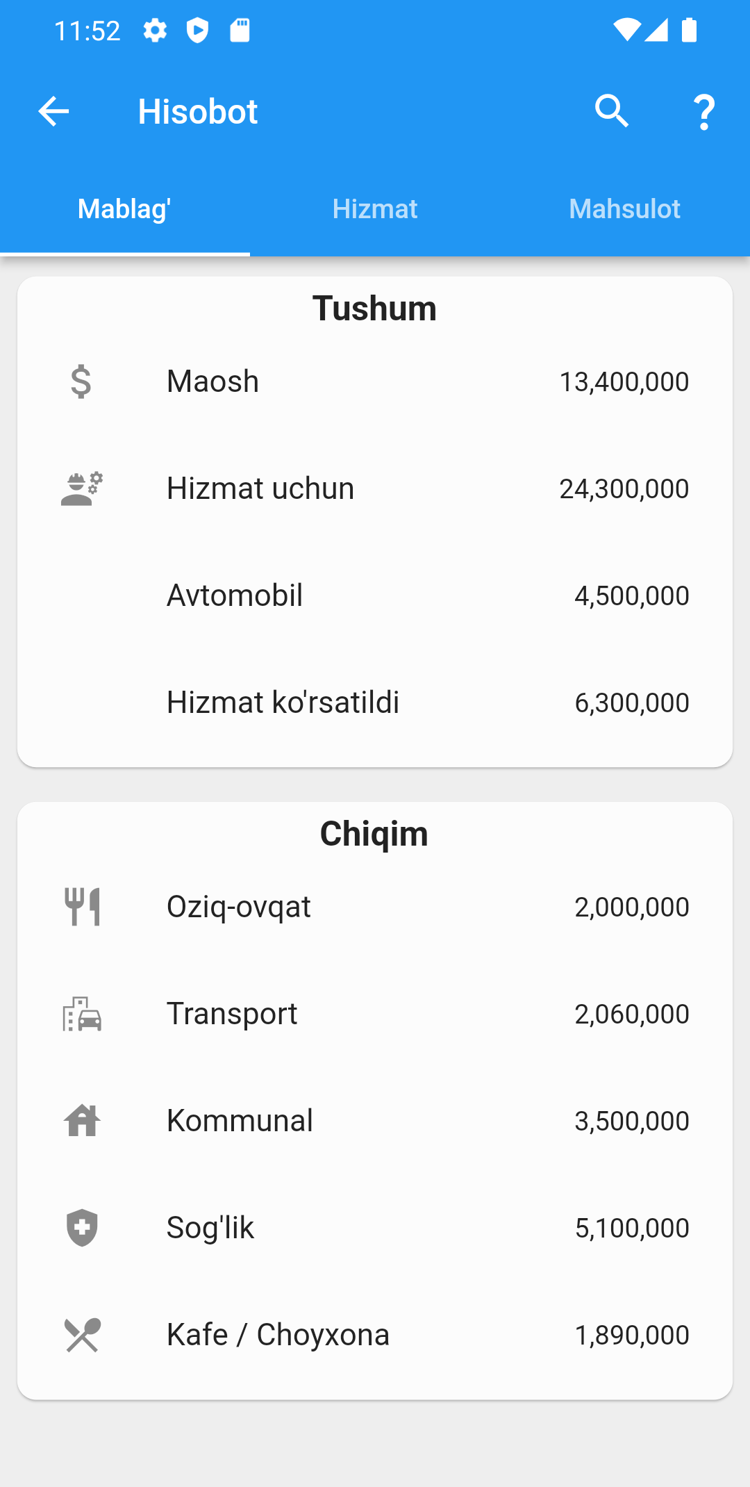Bir oyda qancha mablag' harajat yoki tushum qildingiz, ilova yordamida aniqlang va nazorat qiling. Qaysi manbalardan tushum bo'ldi va nimalarga harajat qildingiz? Ortiqcha harajatlarni aniqlang va qisqartiring Shunchaki har amaliyotingizni kiritib boring